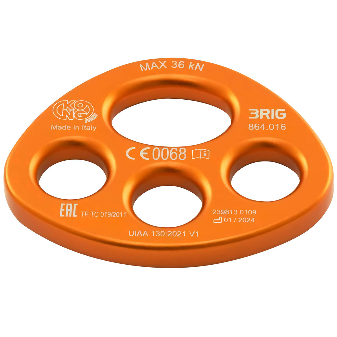 Rigging plater with 3 holes, 20mm diameter, designed to organize a tidy workplace and to create an easy system of multiple anchor points. The upper hole allows to fit two carabiners at the same time. Made of light aluminum alloy, very light, compact and durable. New 10 mm thick version with beveled holes that allow textile items (rope, lanyards, straps) to be directly inserted without the need for connectors. Suitable for simultaneous use by 3 users. High quality product, made in Italy!