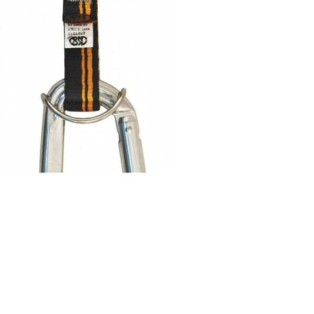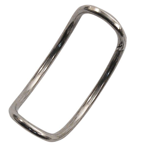 Open stainless steel fastener to be closed with pilers for fixing carabiners to sewn slings.