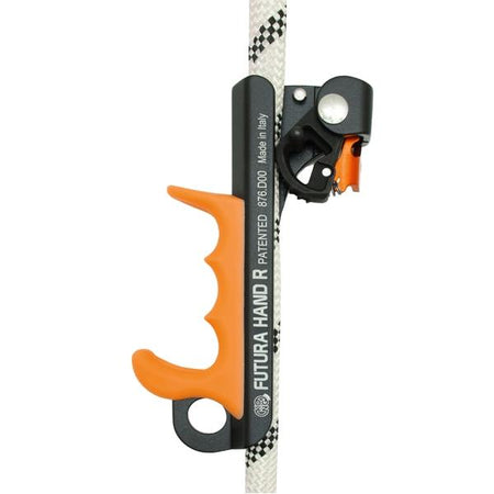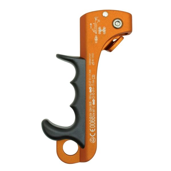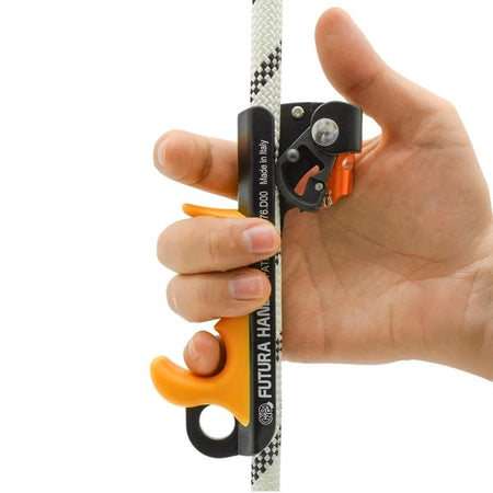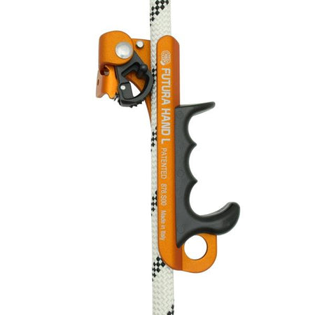 A revolutionary rope clamp for its extremely tiny dimensions (only 125g) and ergonomic shape. Its small size allows the users hand to sit comfortably inside the device, close to the rope in the same way as you would grabbing the actual rope. Available in right and left versions. The best support to ascend a rope with the "ROPE WALKING SYSTEM" (as if climbing a ladder). After testing the system, cavers confirm an excellent performance and a 30%-efficiency's increase during the ascent. Fitted with anti-overturning system of the cam. High quality, made in Italy! Patented.