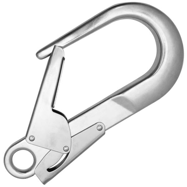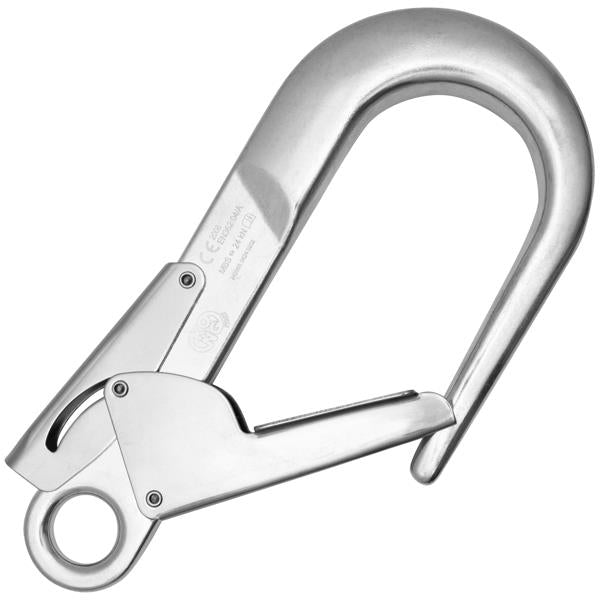 Double gate aluminum connector with wide gate opening for use in scaffoldings and trestel.