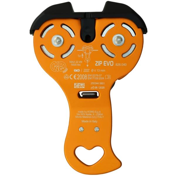 Available ZIP EVO HOOK version, with a hook for hanging connectors, avoiding the wear caused by allowing the connectors to slide along the metal cable (#826050400KK).