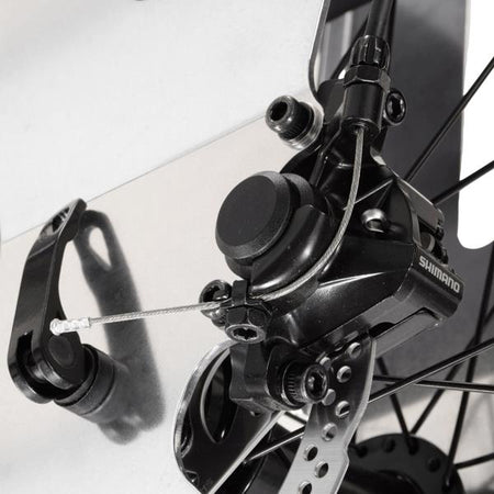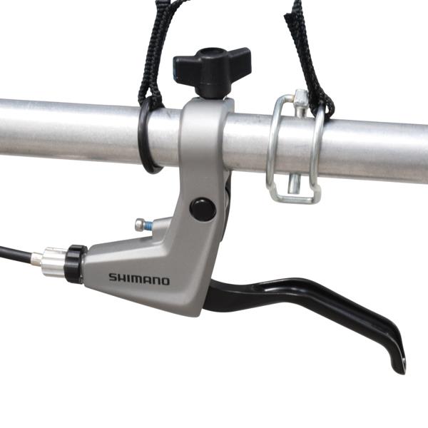 - Shimano™ mechanical disc brake with lever to be mounted on the front right handle (foot side)