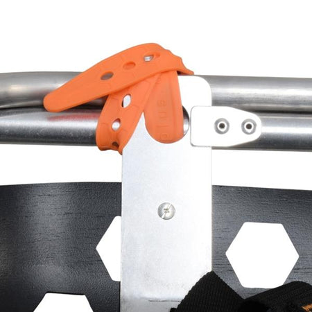 The handles, quickly attachable to the stretcher frame via sturdy elastic straps, facilitate handling and improve stability when moving across rough terrain. The curved grip reduces the risk of losing hold and can be mounted and used in multiple positions to adapt to the transport setup and the operator’s height, thanks to the new captive pin secured to the frame to prevent loss.