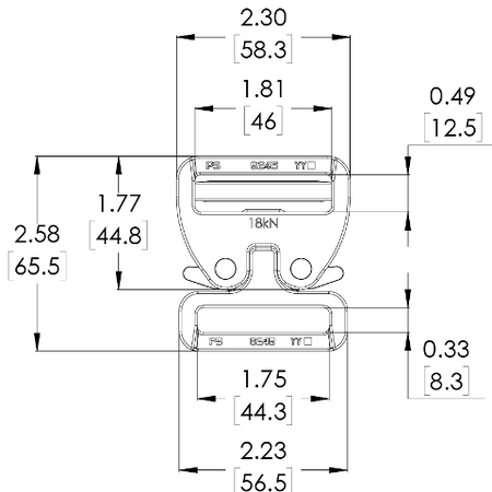 • Lower Section Width: 2.23 in (56.5 mm)