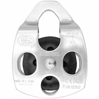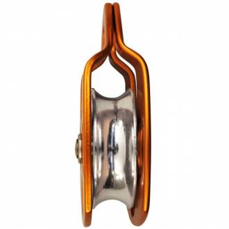 Aluminum pulley with single wheel, mobile side plates and high efficiency (96%) ball bearing . Equipped with two attachment points for use in complex lifting systems. For ropes up to 13 mm diameter. High quality product, in Italy!