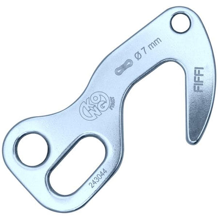Ingenious alu alloy hook for belaying, aid climbing and stirrups. Resting Fiffi allows you to adjust the length of the lanyard and is self-locking. Use with 7 mm static rope. Only for static loads! With Resting Fiffi your stirrup can also be with single step. The upper hole allows the insertion of a lanyard to recover from the top. High quality product designed and manufactured in Italy. Tested piece by piece.